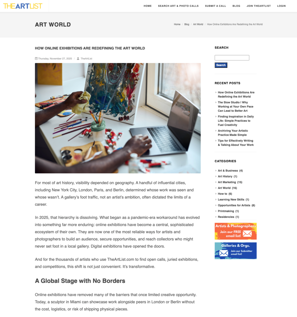 My engaging articles fuel organic traffic for TheArtList, a platform connecting visual artists and photographers to income and exhibition opportunities. Distributed through their 55K+ subscriber newsletter, my content empowers artists by: